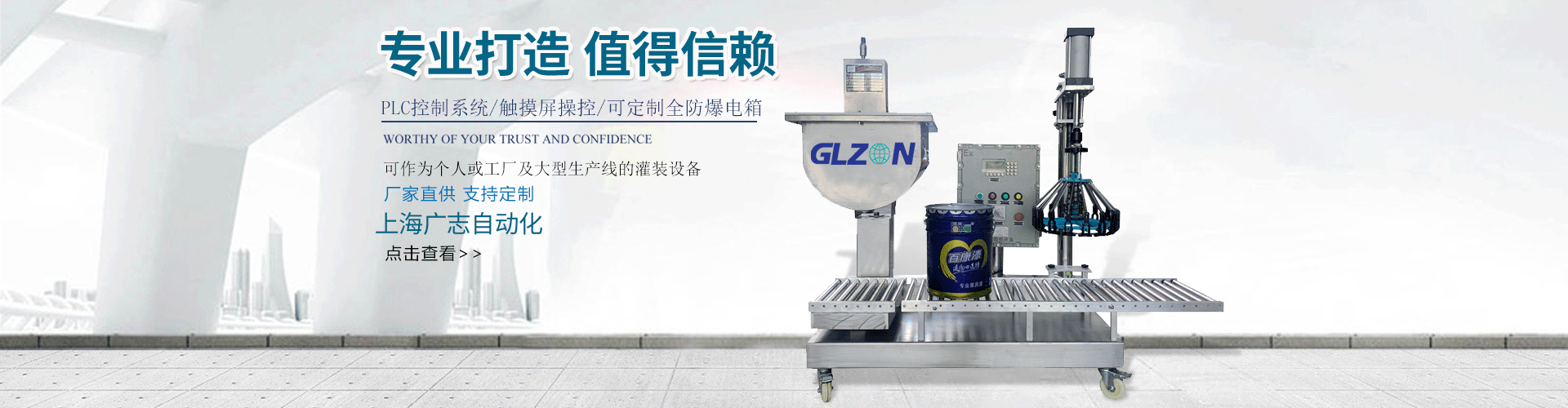 上海廣志自動(dòng)化設(shè)備有限公司致力于研發(fā)和生產(chǎn)化學(xué)液體灌裝機(jī)、乳膠漆灌裝機(jī)、醫(yī)藥灌裝機(jī)、液面下灌裝機(jī)、桶裝灌裝機(jī)等成套包裝設(shè)備。我們擁有一流的產(chǎn)品和服務(wù),不斷追求卓越,始終以客戶需求為導(dǎo)向,為客戶提供高效、穩(wěn)定、可靠的產(chǎn)品和服務(wù)。